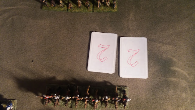 Frustration for the Crusaders - the leaders unit turned a 10 and attempted a redraw to get a better card - anything but a 1 would enable them to charge forward against a disrupted unit of light cavalry.....!