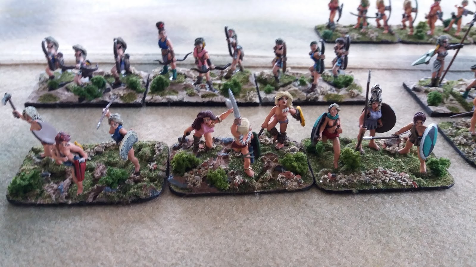 First up is the light infantry contingent. These are a mixture of Shadowforge "Tribal" and Eureka Amazon ranges